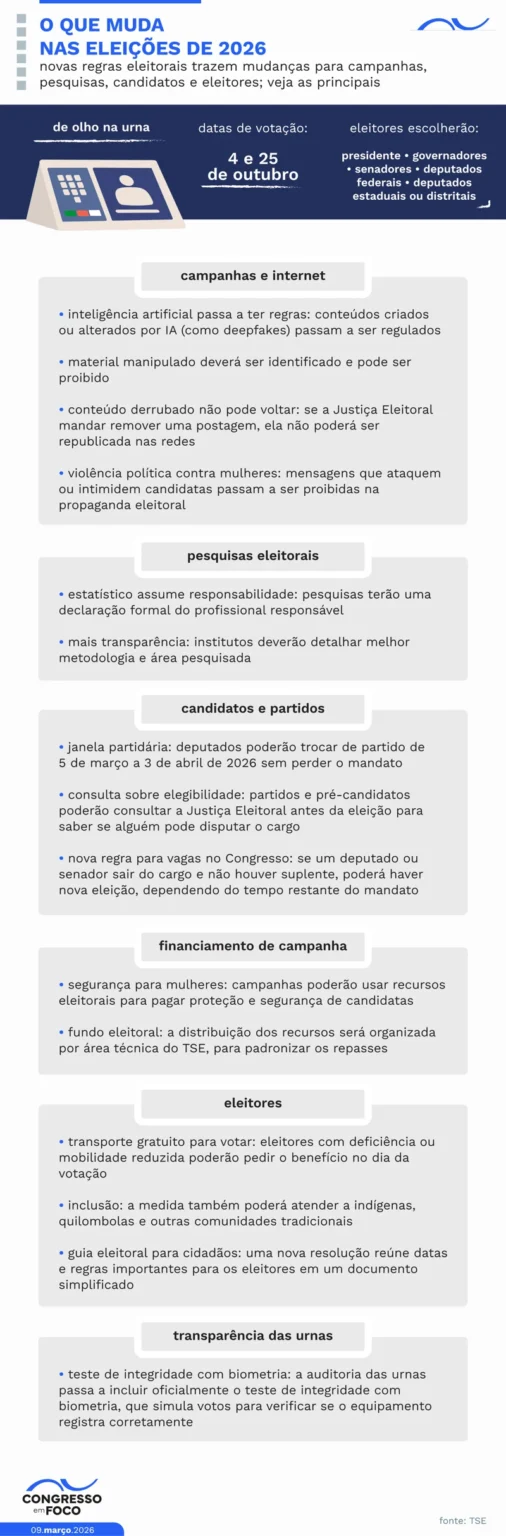 Novas regras do TSE afetam campanhas e eleitores em 2026